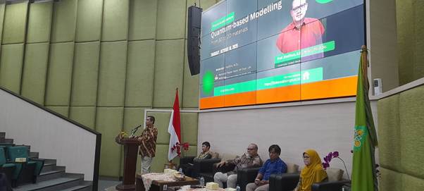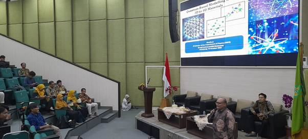 Beliau menekankan bahwa pemodelan berbasis kuantum menjadi kunci penting dalam pengembangan material cerdas masa depan, khususnya dalam bidang nanoelektronika, energi, dan teknologi sensor. Materi disampaikan secara menarik dengan contoh riset terkini dan hasil simulasi kuantum yang menunjukkan perbedaan perilaku elektron pada berbagai skala dimensi material.